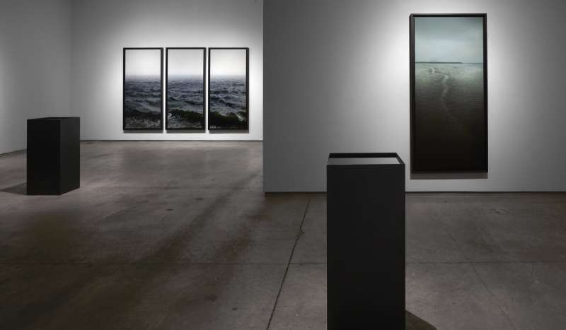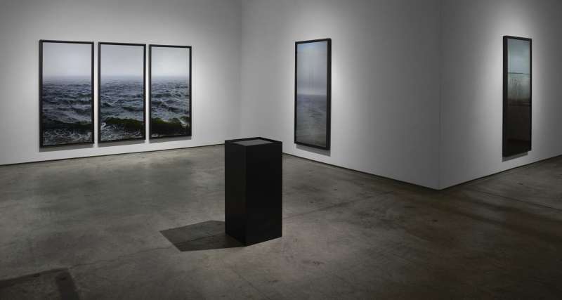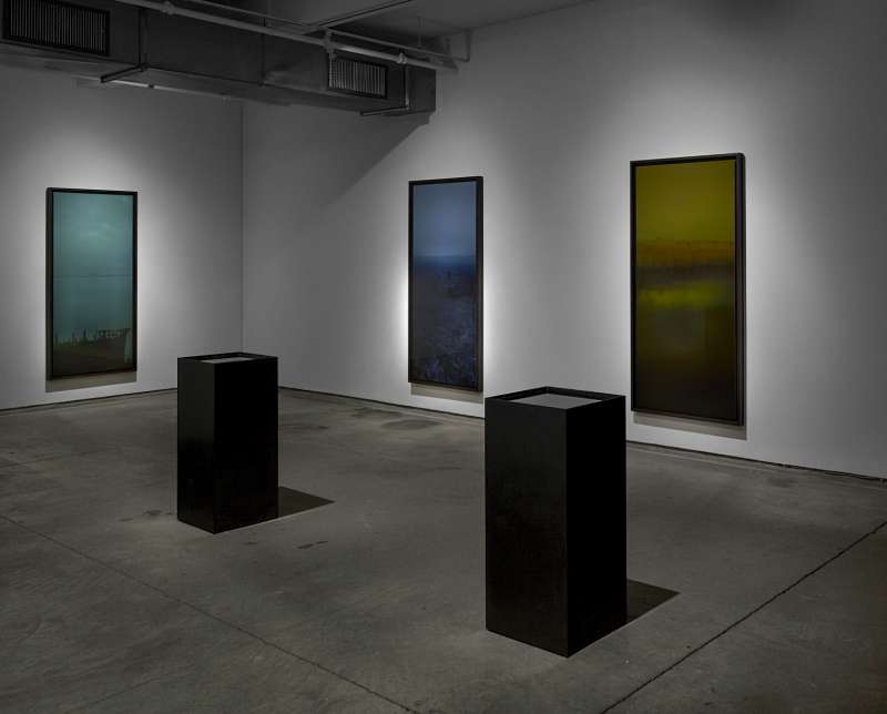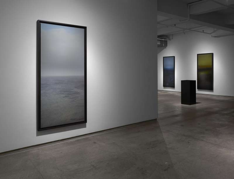 The elongated vertical photographic format recalls Chinese Shan Shui scroll painting, reflecting the abiding influence of Far Eastern aesthetics. Presented low to the ground, and with bodily proportions, they evoke a sense of weightlessness, inviting the viewer to ‘step off’ into the image.