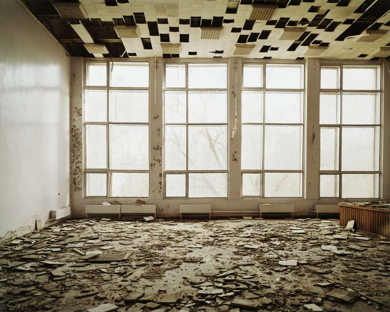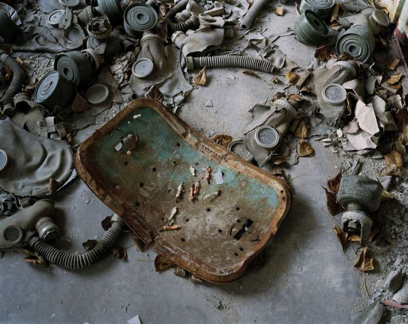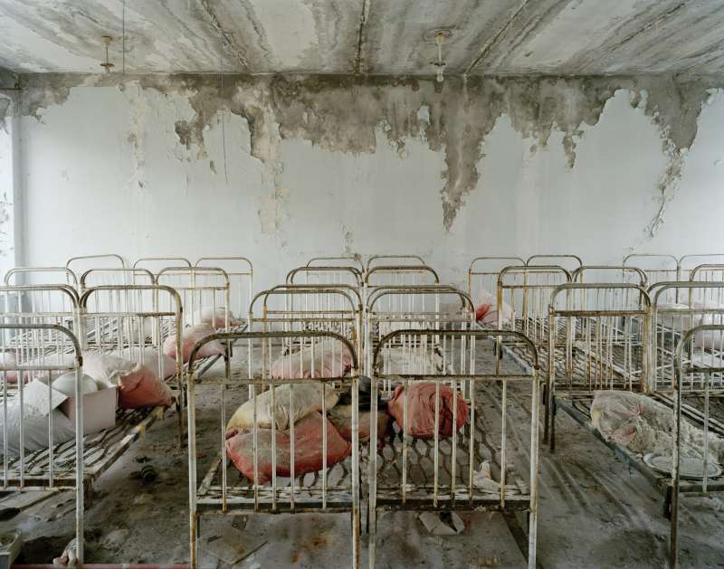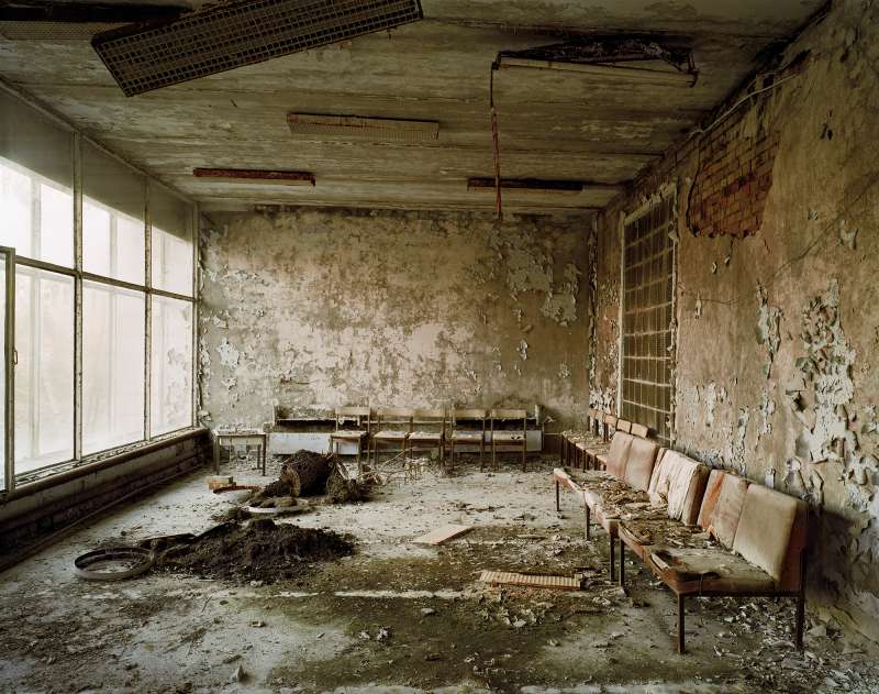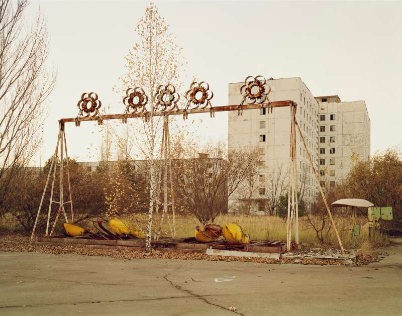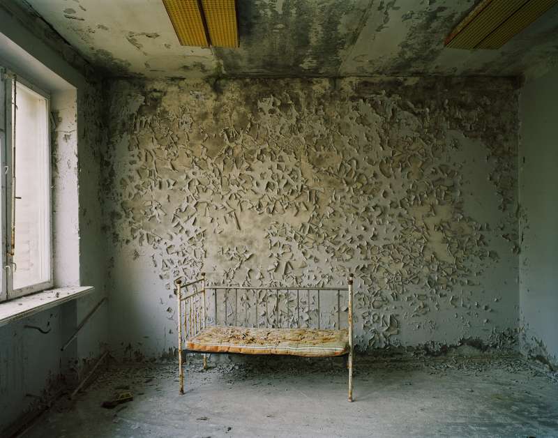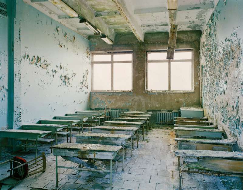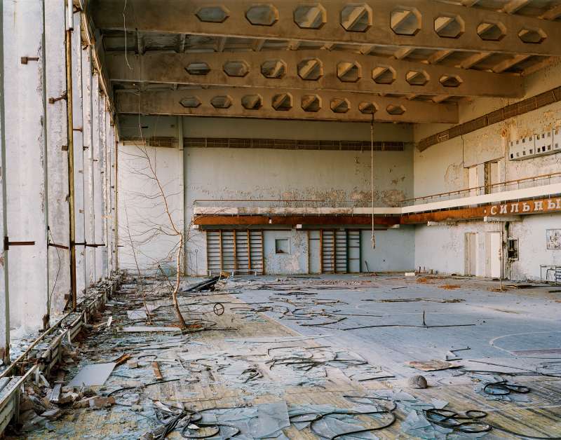 In 1986 a nuclear reactor exploded in Pripyat, a model Soviet town near Chernobyl. The 40,000 inhabitants were evacuated and dispersed. The large radioactive area was cordoned off indefinitely. In 2004 Nadav Kander gained access as an artist. He photographed the hastily abandoned apartments, schools, hospitals and offices. The silence and stillness of the scenes devoid of human life was profound, but their presence was still palpable.